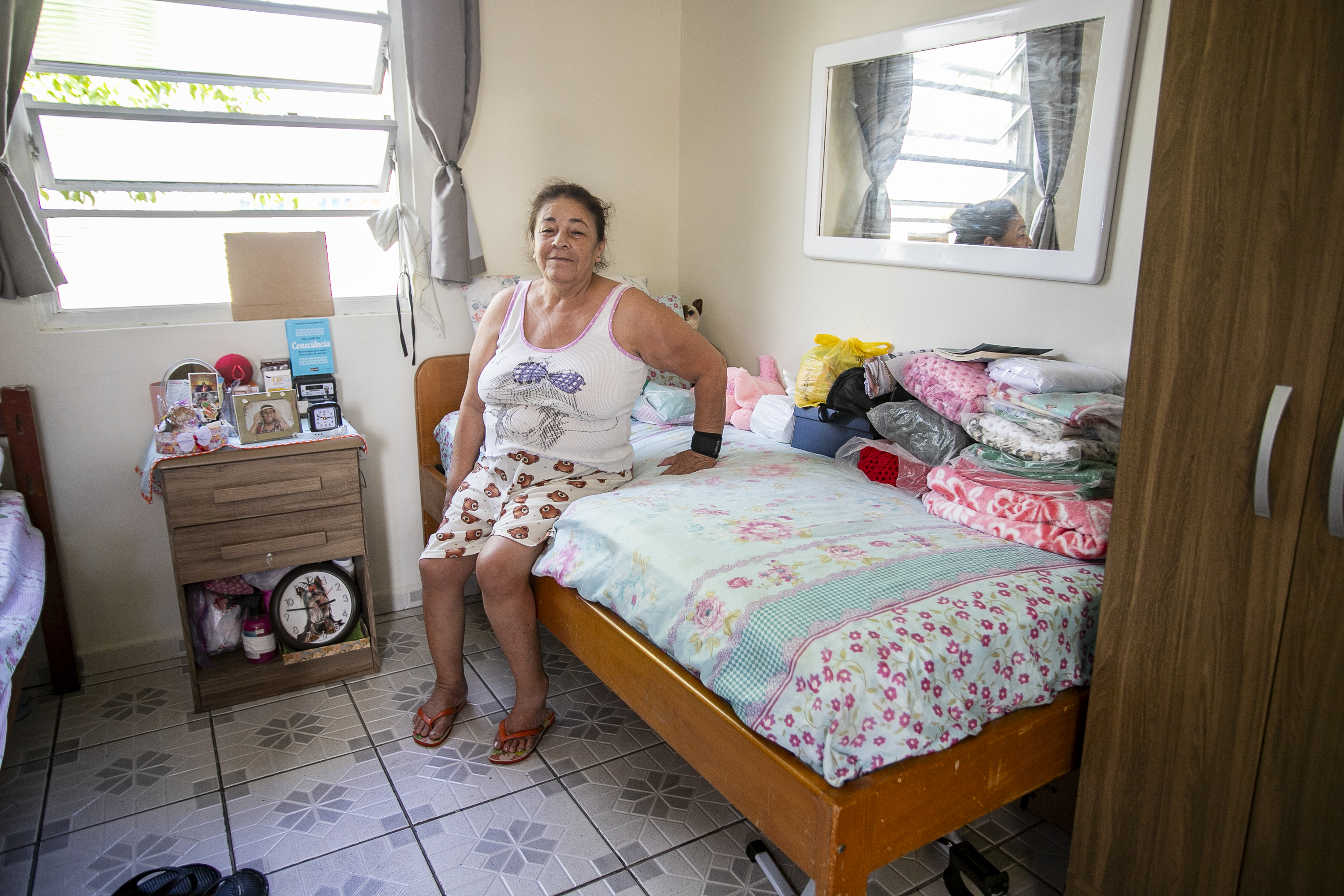 A idosa Maria de Fátima Leite, que vive há oito anos no lar, comemorou as melhorias. “O ventilador pequeno não ventilava bem e agora temos um maior. Com a pintura e a troca do forro, parece que ganhamos um quarto novo de presente”, disse.