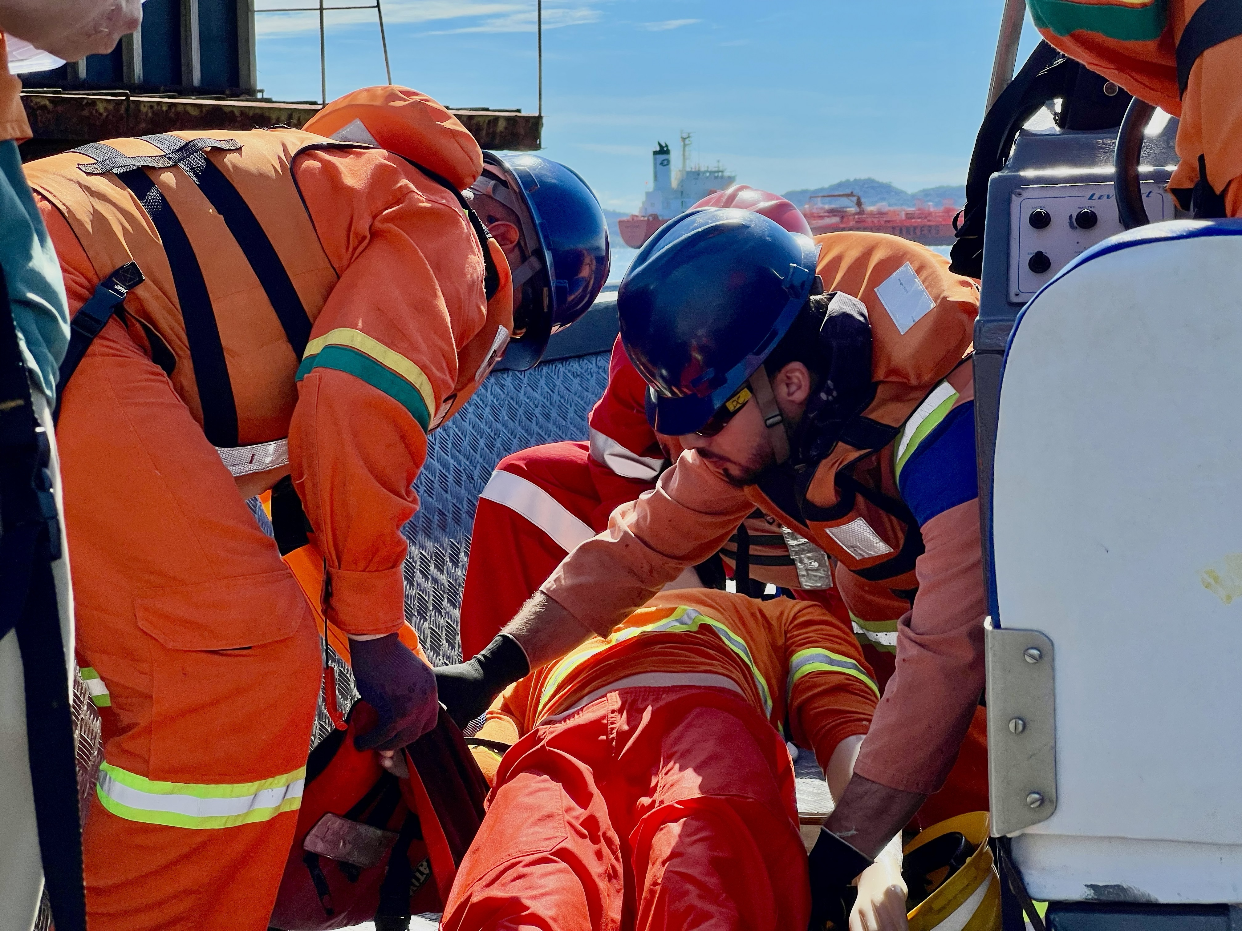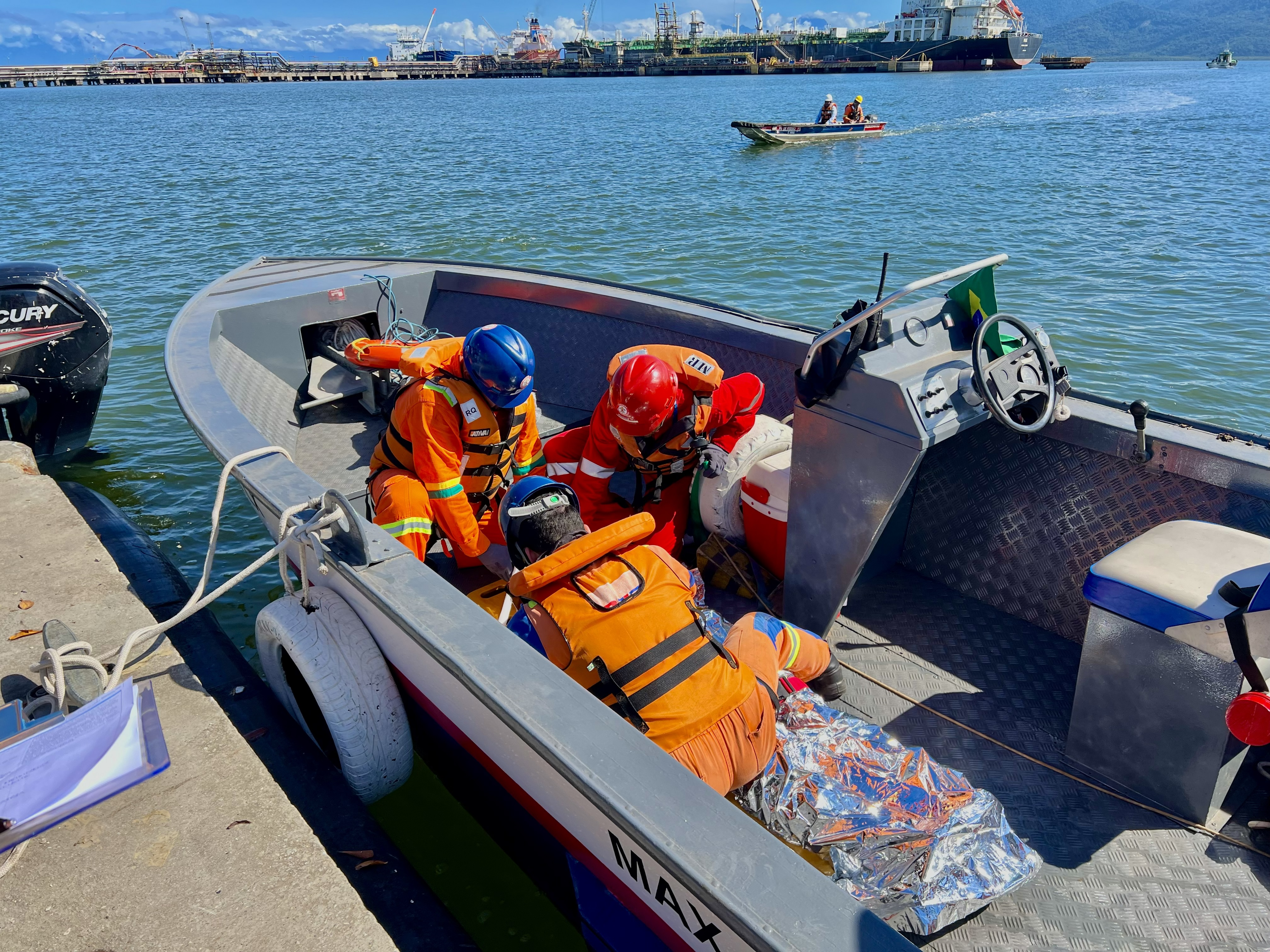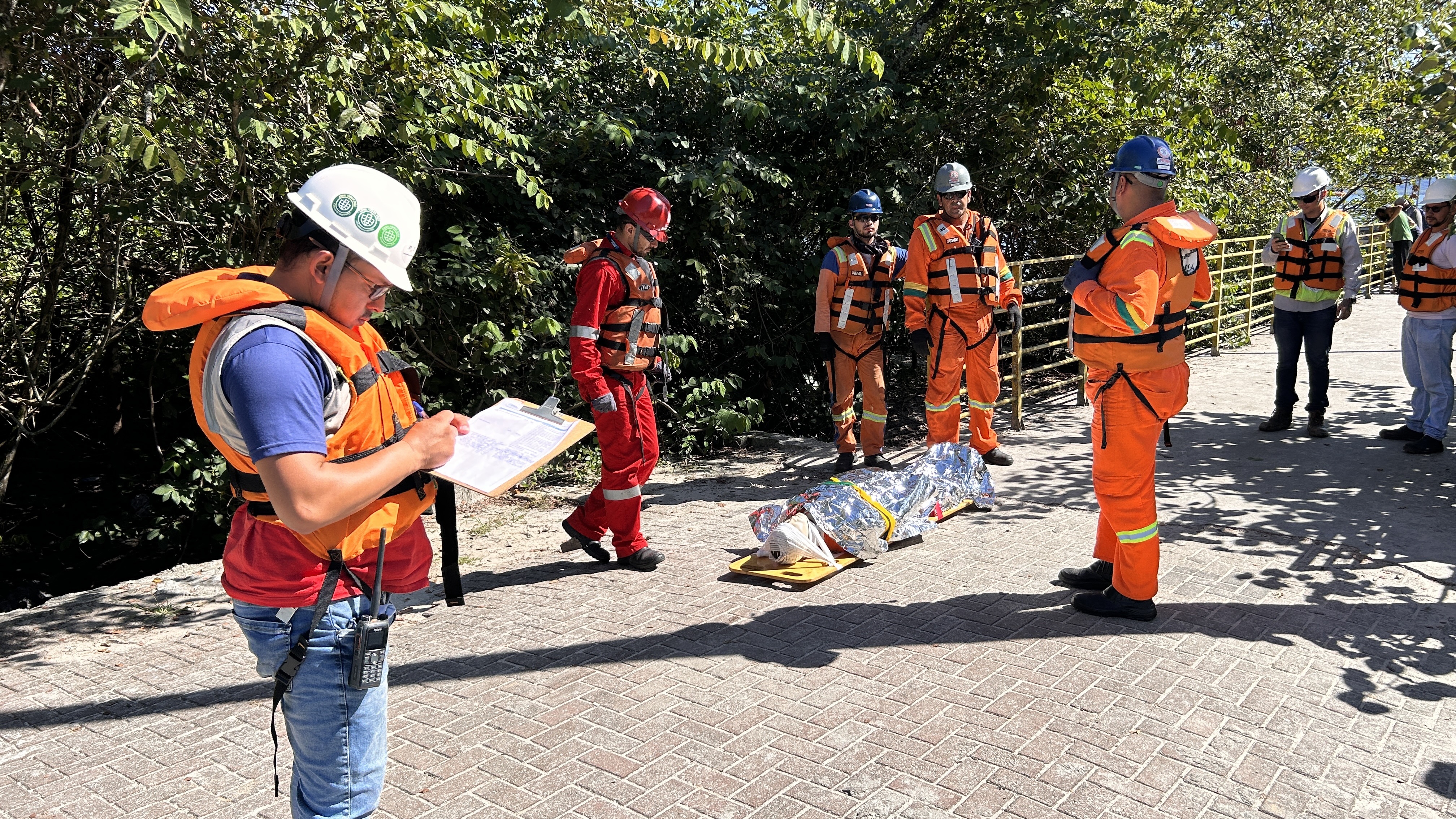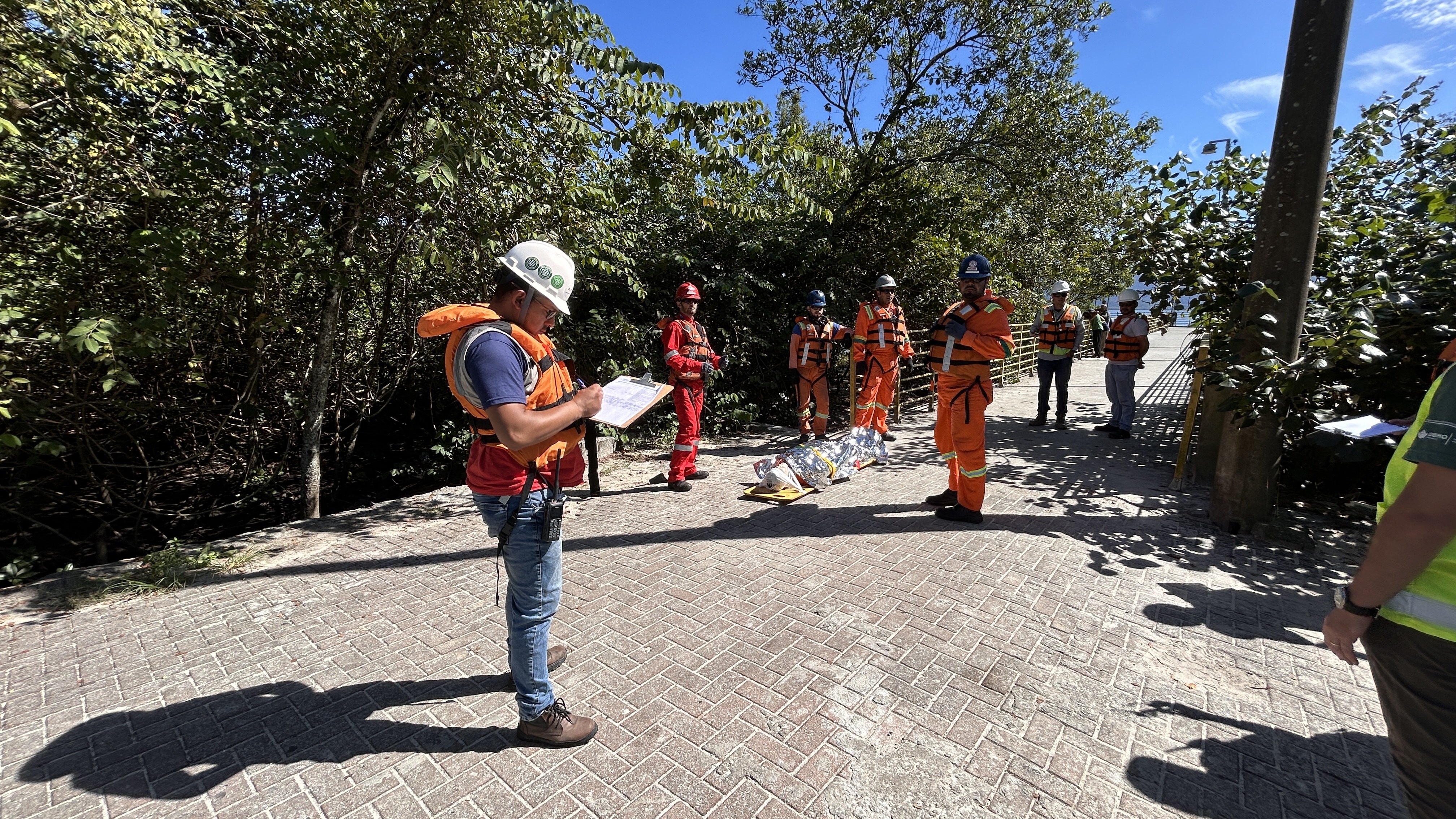 Atividades como essa auxiliam na verificação de pontos que demandam atenção e melhorias, evitando falhas em situações reais. “Aproveitamos que o espaço passa por uma obra de ampliação para realizar o exercício. Nessa simulação, o personagem central era um trabalhador que passou mal e caiu no mar”, explicou Felipe Zacharias, assessor especialista em Saúde e Segurança do Trabalho da Diretoria de Meio Ambiente.